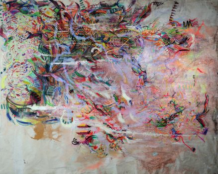 Born and raised in Miami, Cuban American artist Alex Nuñez creates vibrant mixed-media paintings that explore her surroundings and personal experiences, combining expressive color with experimental materials. Working in a spontaneous and intuitive process, Nuñez builds up her textured canvases on the floor, pouring brightly hued paint, drawing rapidly in chalk pastel and oil stick, then finishing with such materials as glitter, crystals, and flecks of gold leaf. Describing her practice, she explains, “Ultimately, I strive to create art that bridges the sensory and the symbolic, celebrating the beauty and resilience of the natural world.”