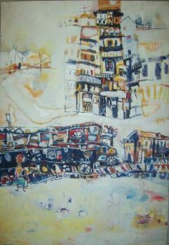 Behailu Bezabih enjoys experimentation in his work, spontaneity and eagerness are major themes in his practice. As a painter and teacher Behailu takes inspiration from life around him, a world of fast moving ideas, in response he is direct with his canvas, applying his thoughts quickly and embracing what he perceives to be successful while also letting go of what appears to have failed.