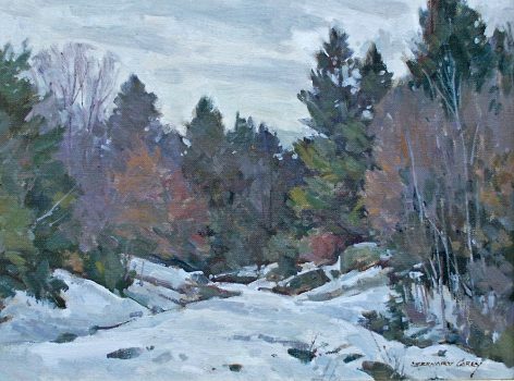 Bernard Corey, known for his delicate New England landscapes, is considered one of the premier New England plein air artists of the twentieth century. He was born on September 3, 1914 in Grafton, Massachusetts, and he lived his life in the house that his grandfather built in South Grafton. From an early age he grew to have a deep love of nature and spent a lot of time in the woods surrounding his home. His love of art also began at an early age, and he was encouraged by his parents to develop his drawing skills. Although he had no formal art training, he taught himself to render nature in oils and watercolors.