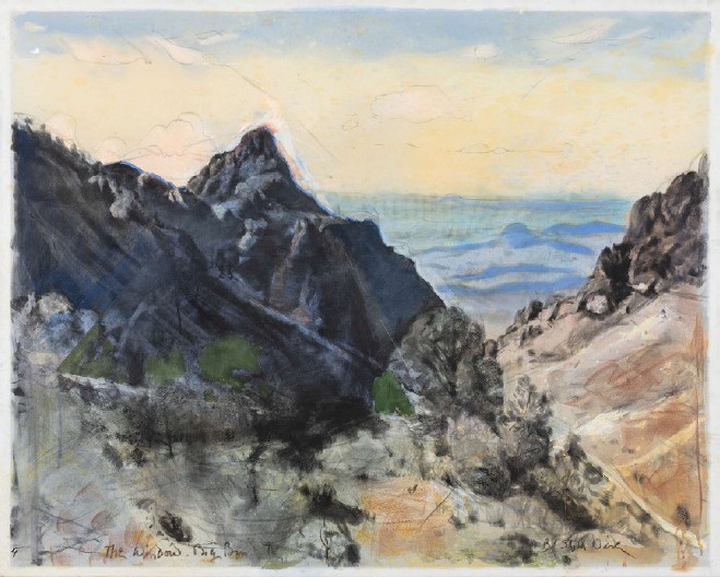 Bob Stuth-Wade has dedicated more than fifty years to portraying the beauty and spiritual essence of nature in his drawings and paintings. Often painting in plein air, he creates naturalistic representations of Texas, drawing from places such as Big Bend National Park, the Colorado River near San Saba, and the landscape around his home in central West Texas. He begins with small plein air sketches, later developing larger, more complex works in his studio.