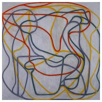 As Marden’s works evolved he started to move away from solid areas of colour to a more open and calligraphic style. Untitled #3, developed during the 1980’s is a good example. Here Marden is continuing with his preoccupation of placing colour in unique spatial combinations, but he was now drawing in space rather than painting in space as his marks become more gestural. What is still evident is his ability to make different colours look as if they really belong with one another, and more than ever he seems to be channelling the thinking of Mondrian. Marden seems to be finding sympathy with some of Mondrian’s earlier abstractions where the idea of the drawing is distilled into an objective space. Line now becomes paramount while various areas of transparency play with spatial concepts.