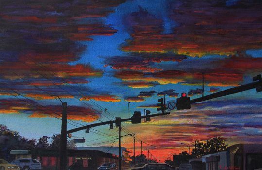 Oklahoma-born watercolorist F. Cole Wolford started painting later in life with no formal art training, following a career as an internal medicine specialist primarily treating HIV patients. He earned a Bachelor of Science degree in 1980 from Virginia Tech and a Doctor of Medicine degree from Eastern Virginia Medical College. His paintings reflect a balance between surgical precision and a sense of freedom that finds beauty in unconventional vantage points. Intrigued by color and the way that value changes can transform a shape or a shadow from a flat plane into three dimensions, Wolford appreciates “being able to create things as I want them to be, rather than being forced to take them as they are.”