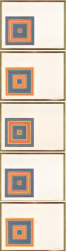 Throughout his prolific career, painter, sculptor, and printmaker Frank Stella has pushed the conventions of abstraction beyond their assumed limits. Stella’s introduction to the art world came in 1959 through his black “pinstripe paintings”—large-scale canvases featuring patterns of thin lines spaced uniformly across the composition. Using a housepainter’s brush and methodical regularity, Stella rejected the connotations of art making, famously quipping, “What you see is what you see.”