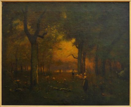 Inness’ style, which employed chiaroscuro and atmospheric effects to interpret the quiet mood of his rustic landscapes. In the early 1860s, Inness moved from New York City to Medfield, Massachusetts, and in 1864, he relocated to Eagleswood, New Jersey. At Eagleswood he was introduced to the teachings of Emanuel Swedenborg. It became his religious faith, and determined, too, the increasingly allusive, expressive, and almost mystical character of his later art. Inness lived in Italy from 1870 to 1874 and in France briefly in 1875, when he returned to America. In 1876 he settled in Montclair, New Jersey. He lived in Montclair for the rest of his life, but traveled widely, often for the sake of his health, to Niagara Falls, New York; Virginia; California; and Tarpon Springs, Florida. He died on a trip to Scotland in 1894.