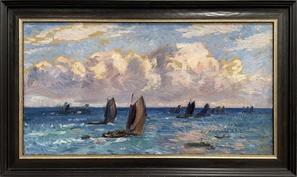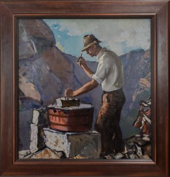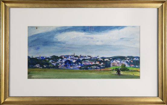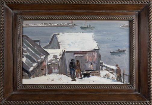 Painter and watercolorist Gifford Beal gained national recognition in the early twentieth century for his gentle, warmly lit depictions of American landscapes and urban views. Born into a prominent New York family, Beal began his artistic training as a teenager with summer courses led by American impressionist William Merritt Chase. Under Chase’s tutelage, Beal mastered the impressionist technique of documenting the transient effects of light and atmosphere, an approach that continued to shape his work as his style and subject matter evolved from austere seascapes featuring monumental figures to dynamic views of New York’s freight yards. Friend and fellow painter Barry Faulkner said Beal’s work showed, “the eternal pleasures of work and leisure, the casual enjoyable incidents which add so much to life’s richness.”
