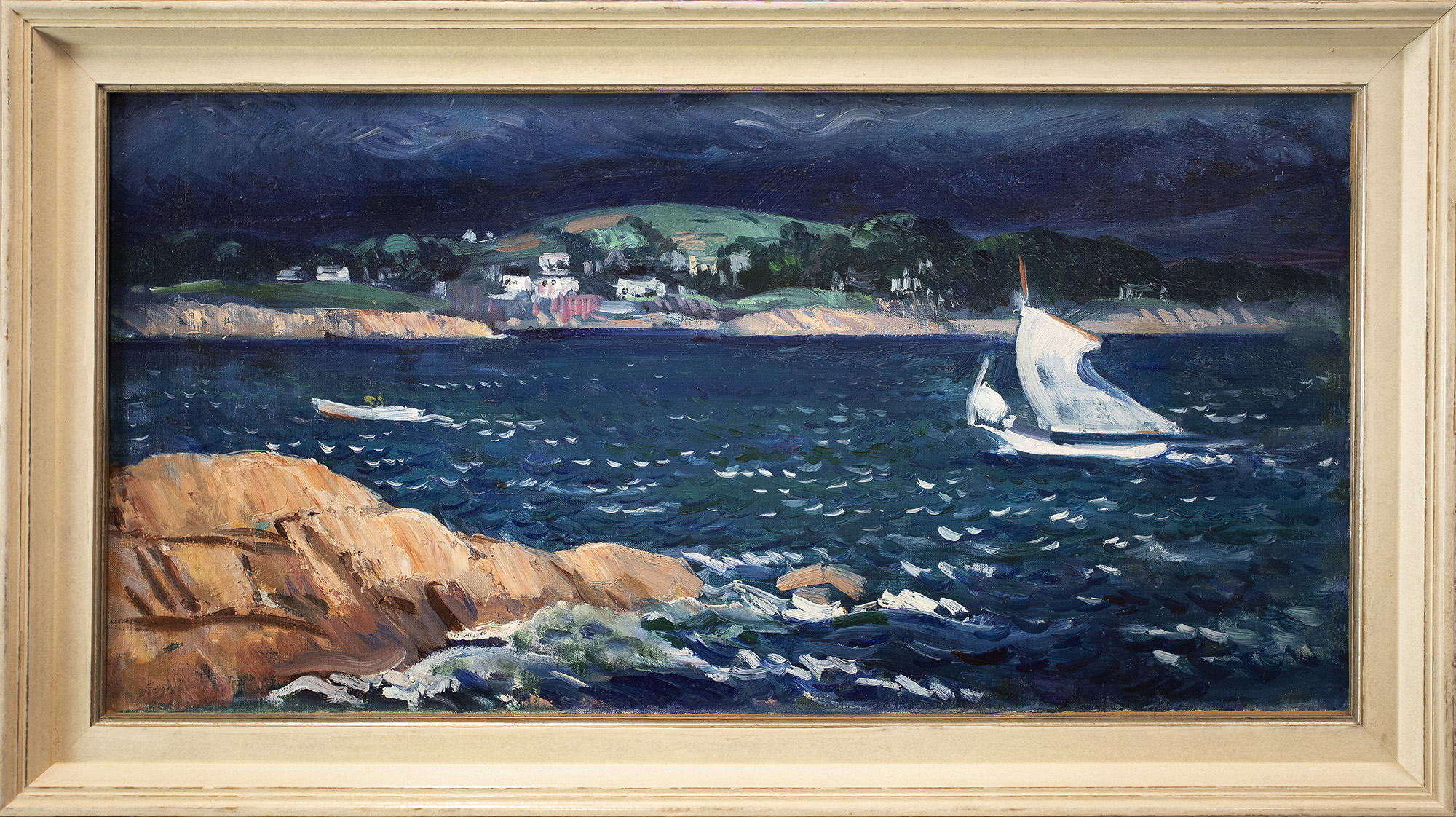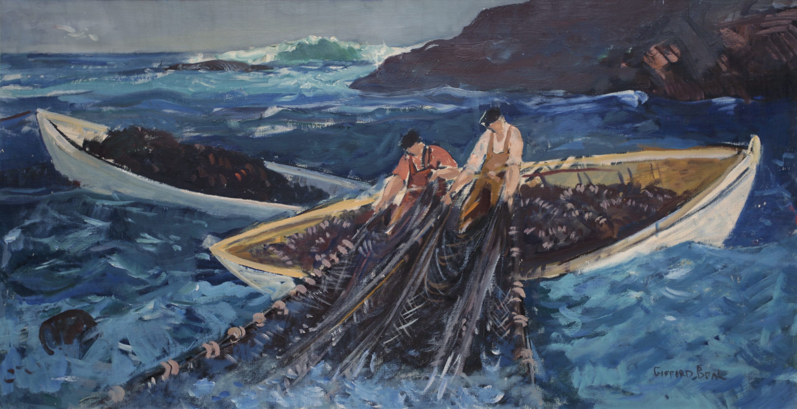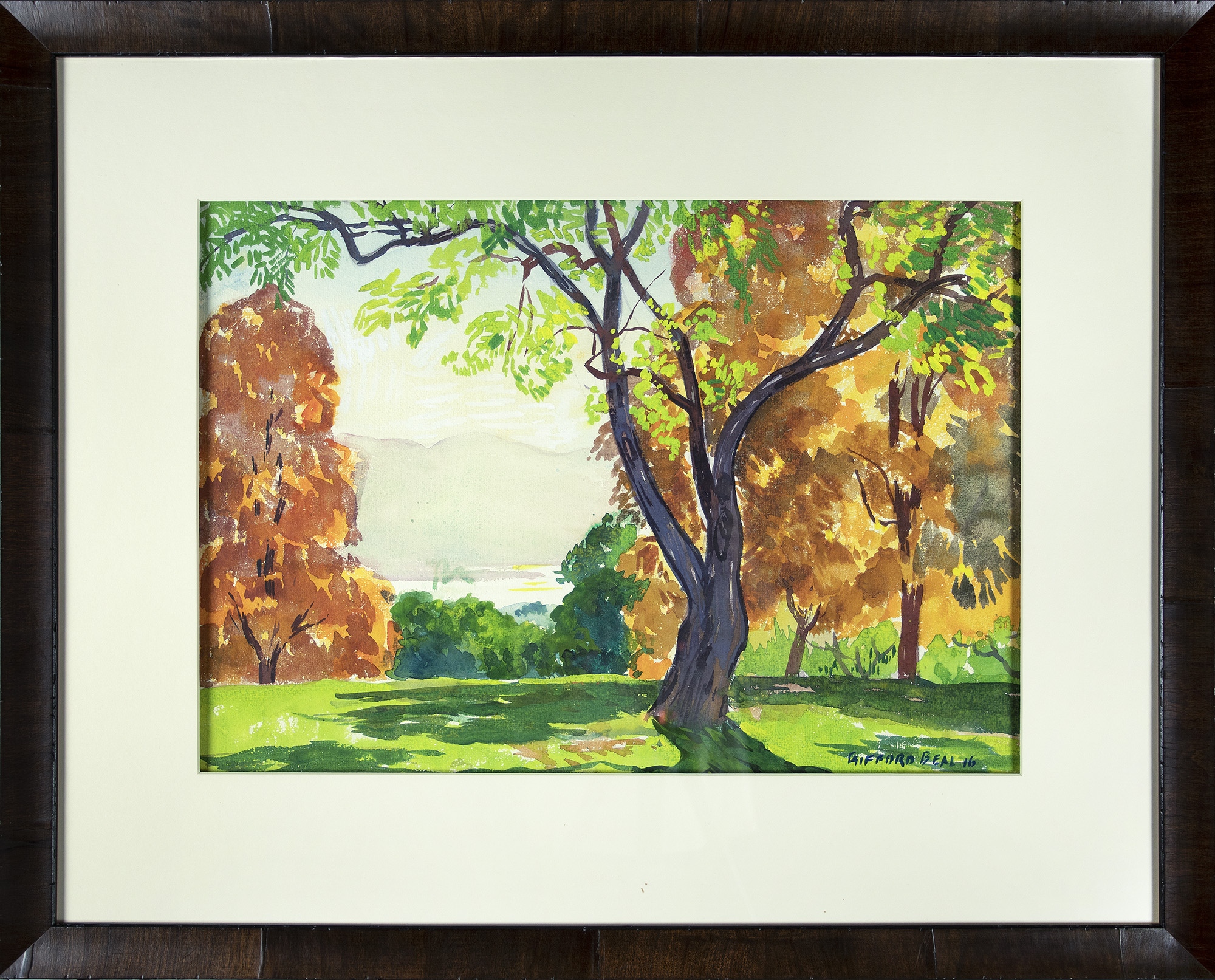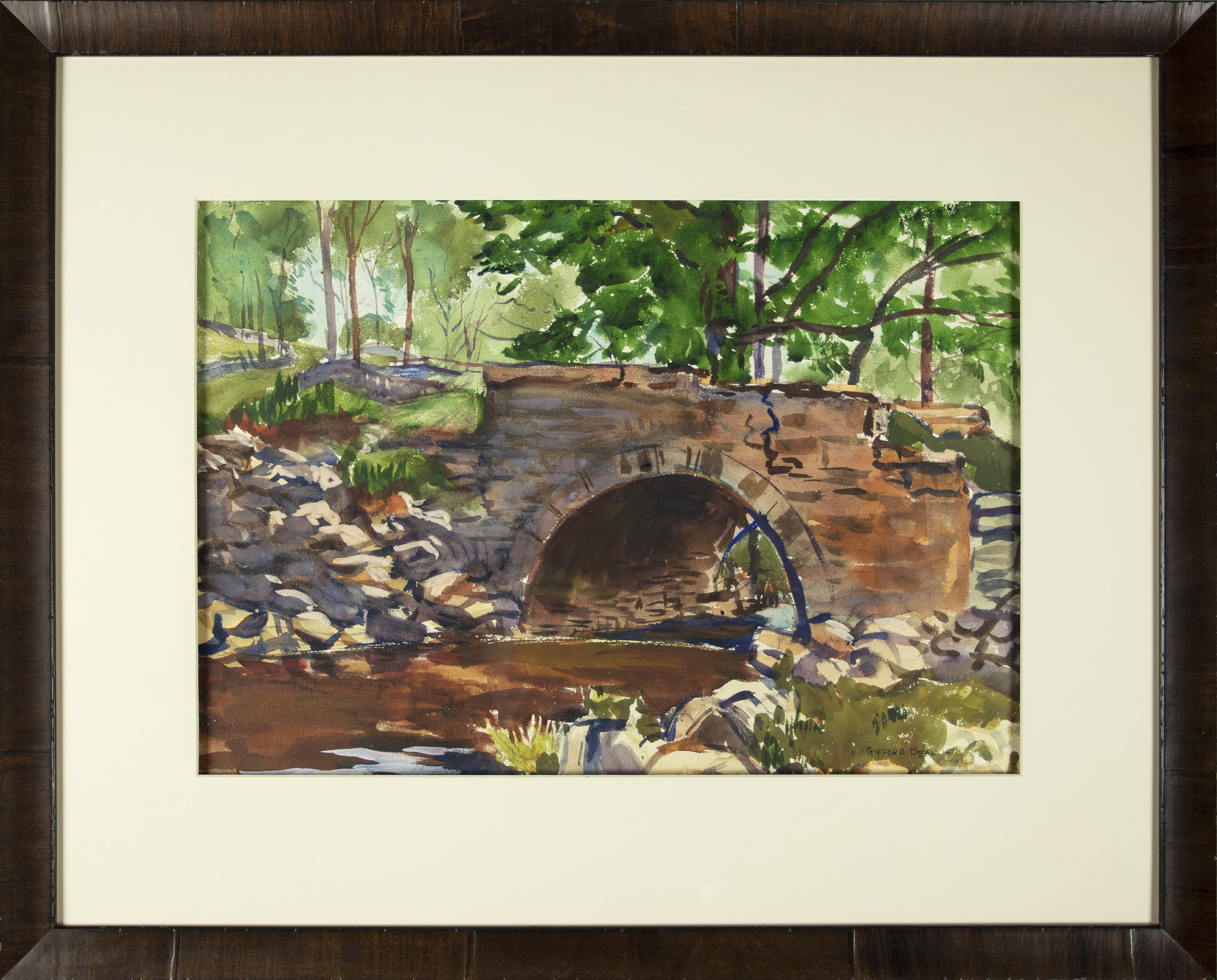 Painter and watercolorist Gifford Beal gained widespread recognition during the first half of the twentieth century for his gentle, warmly lit depictions of American landscapes and urban views. His style and subject matter shifted throughout the years, from austere seascapes featuring monumental figures to dynamic views of New York’s freight yards. Friend and fellow painter Barry Faulkner said Beal’s work showed “the eternal pleasures of work and leisure, the casual enjoyable incidents which add so much to life’s richness.”