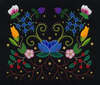 For artist Jessica Gokey, beadwork is more than just a hobby; it is a cultivated practice inspired by nature that celebrates her Ojibwe heritage. Her process begins with substantial research and transitions to sketching and drawing her subject on a pad and sketch-and-tear paper. She then layers the wool or felt base with a stabilizing material to hold it in place while beading and composing her subject. A master Ojibwe bead artist from the Lac Courte Oreilles Band of Lake Superior Ojibwe near Hayward, Wisconsin, Gokey is committed to preserving traditional Native American beadwork. After a six-month fellowship at the Minnesota Historical Society, Saint Paul, she began teaching classes and workshops to help ensure the art form’s legacy.