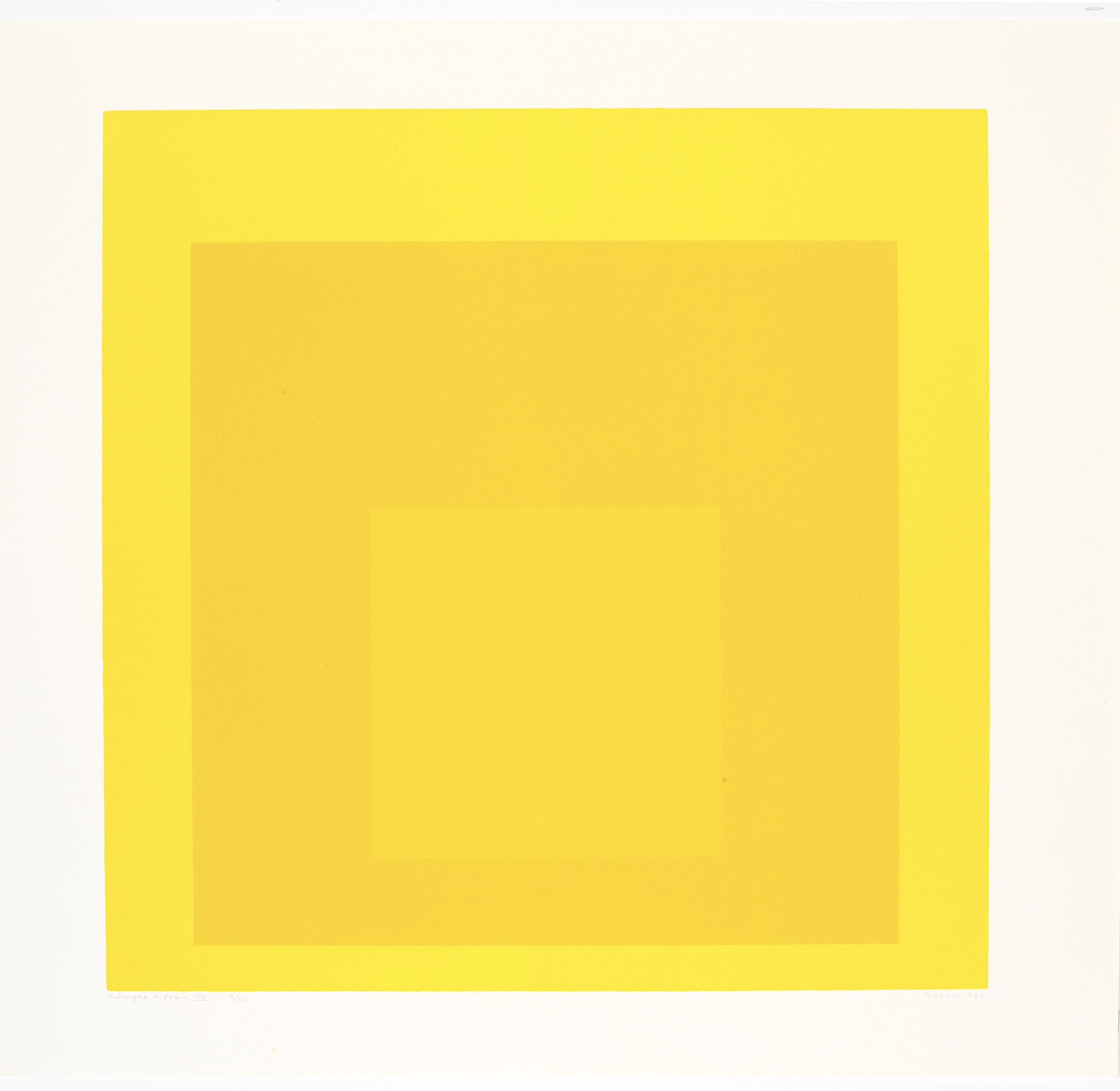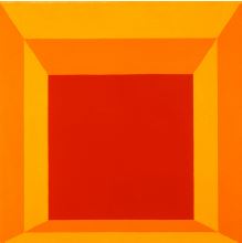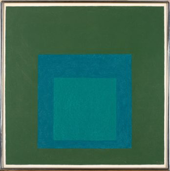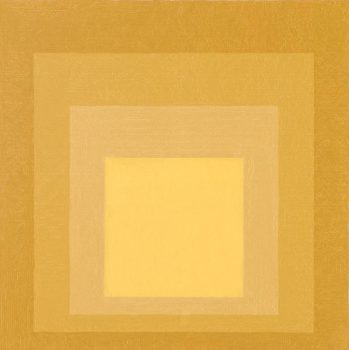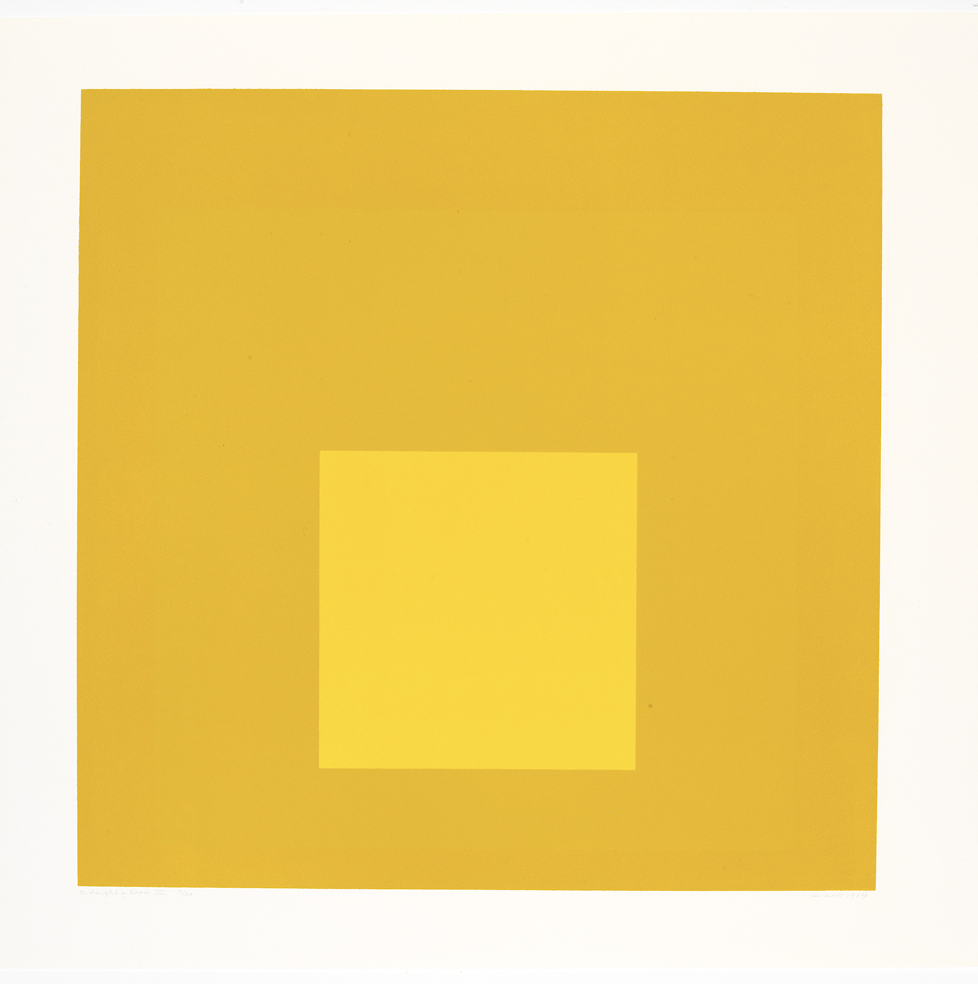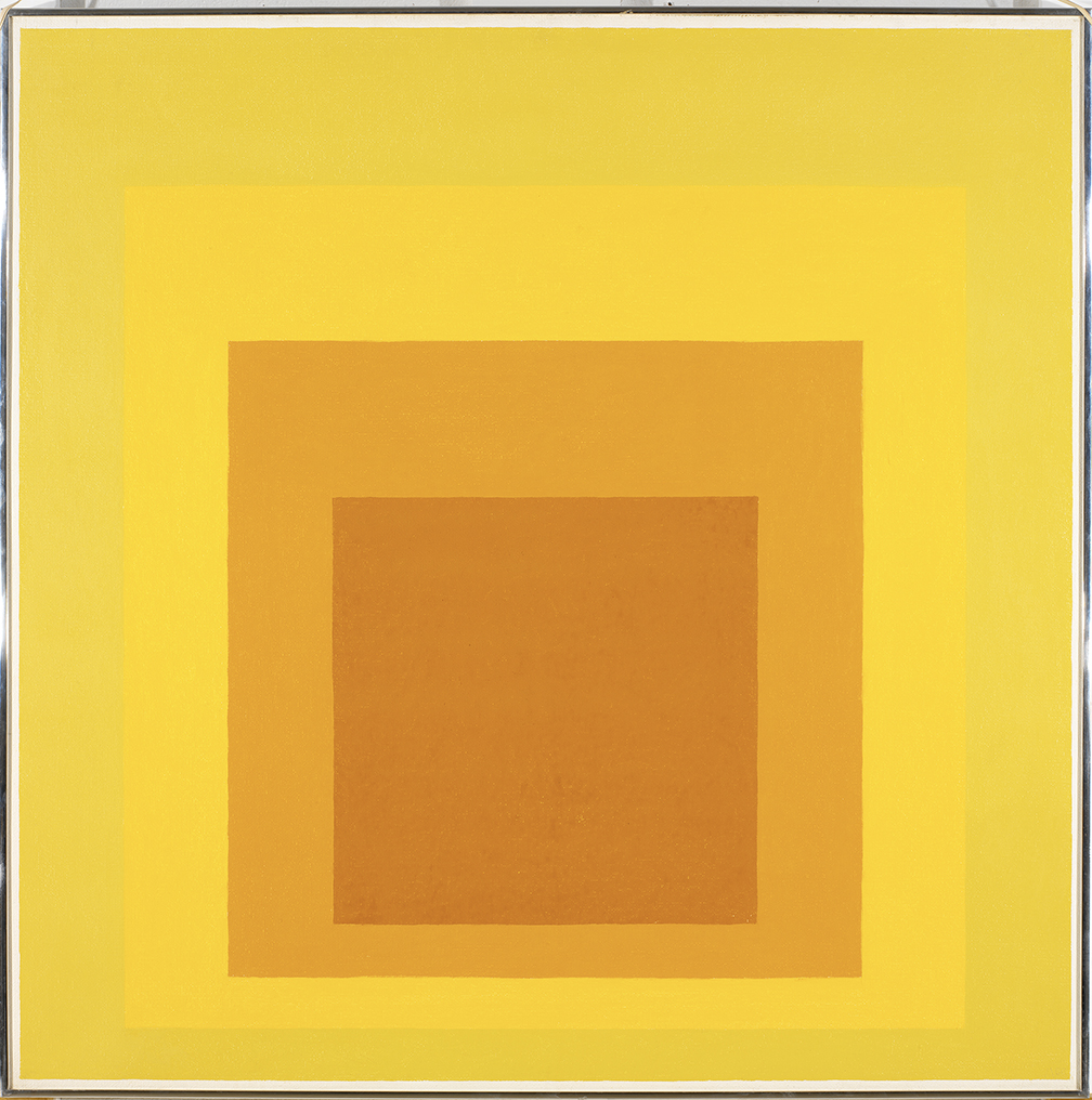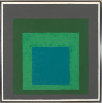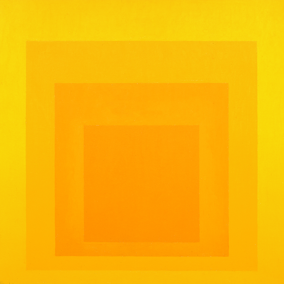 Artist, writer, and educator Josef Albers (1888—1976) worked with glass, photography, printmaking, and other modes of expression, but he was most well-known for his role in developing color theory in the twentieth century. Albers’s iconic series, Homage to the Square, featured simple, flat colored squares concentrically placed on the canvas. “Simultaneous contrast is not just a curious optical phenomenon—it is the very heart of painting,” Albers said. His Interaction of Color (1963) remains one of the most innovative texts on color theory and contemporary art.