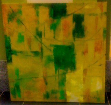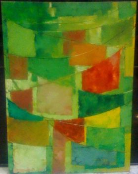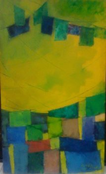 The fruit of his art are some contemporary paintings, oil on canvas, originally figurative and becoming more and more abstract day after day. His paintings are rich in alive colors, often greens and yellows, with vertical lines defining roughly women, pastoralists, patriots, seasons, or what the observer’s imagination inspires to himself.