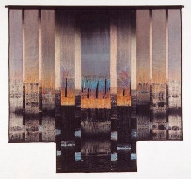 Judith Content (b. 1957) is a fiber artist in Palo Alto, California, who utilizes a contemporary interpretation of the Japanese dye technique, Arashi Shibori. Her hand-dyed, quilted, and pieced silk wall pieces often depict elaborate landscapes that are inspired by the mystery and majesty of the Pacific coastline.