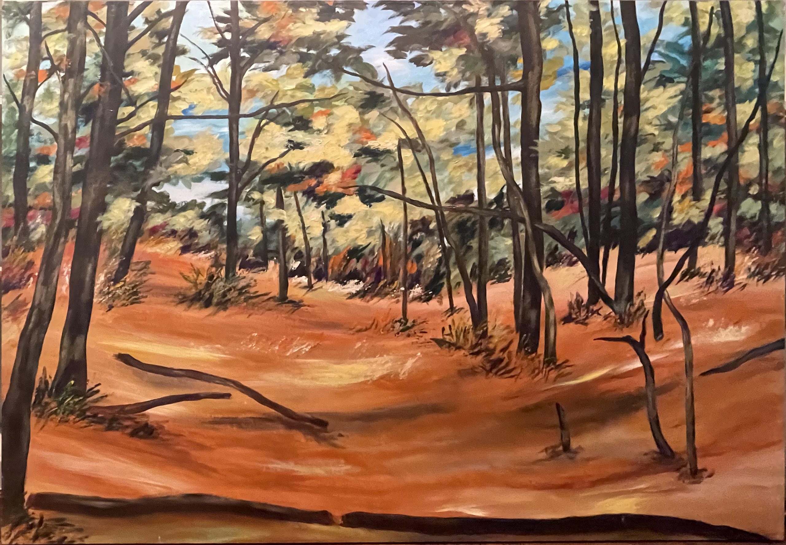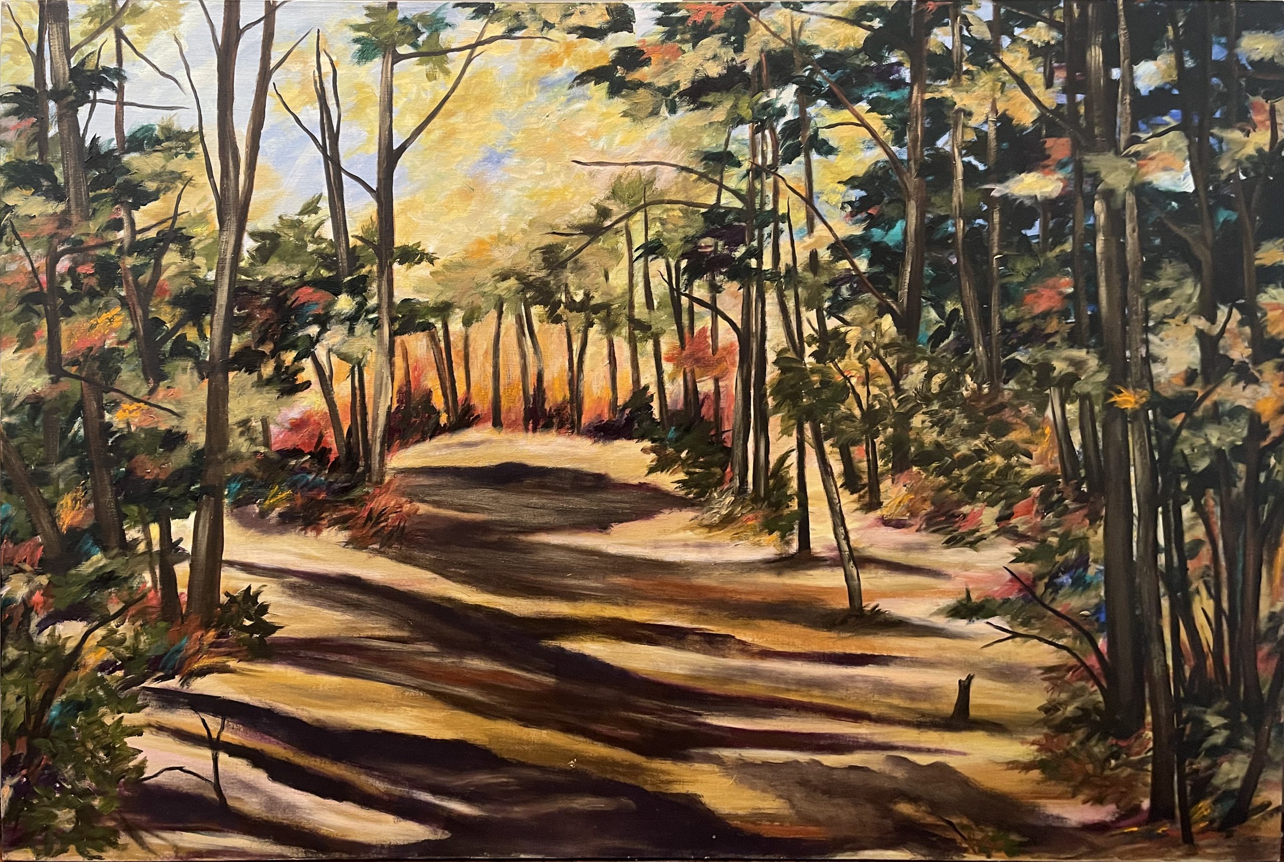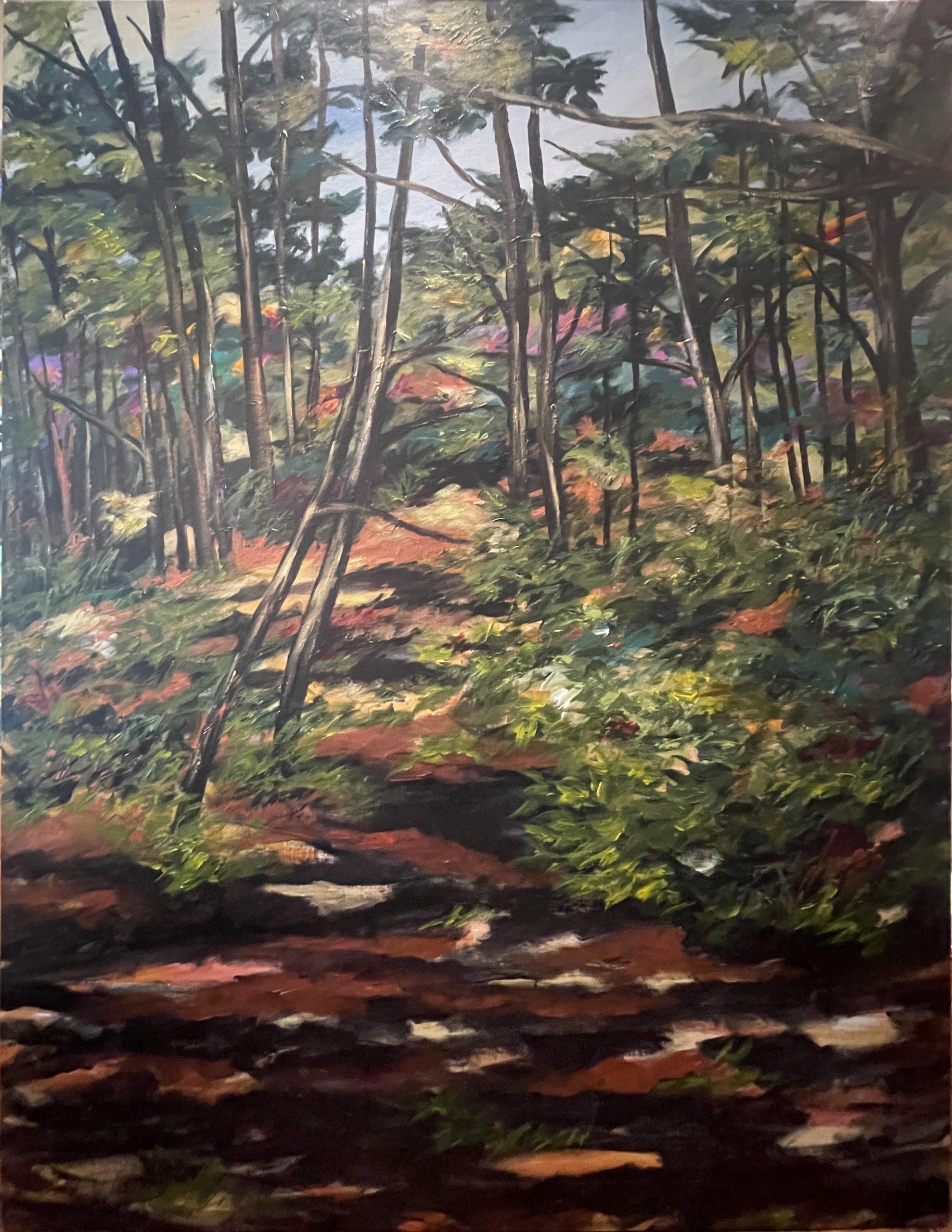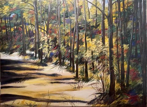 Kitty Klaidman uses art as a way to process the trauma and anger that surrounded living through the Holocaust during her early childhood. “The very sparseness of [Klaidman’s] work…speaks quietly of the hardness of those years and the strength of the human spirit,” one Washington Post critic said. After World War II, she moved to Israel and then the United States, where she began painting. Her delicate, richly toned acrylic paintings reveal gentle brightness and movement in natural landscapes.