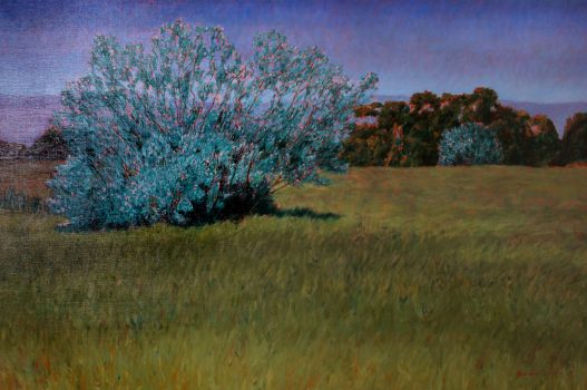 Contemporary realist painter Lloyd Kelly brings an abstract and conceptual twist to traditional still lifes, equestrian subjects, and lush landscapes. Through underpainting, Kelly covers the entire canvas with intense, bold hues on opposing sides of the color wheel, creating works that “attract, repel, create tension, and come to a resolution through visual dialogue and interaction with the viewer.” Kelly’s paintings focus less on depiction and more on “emotions, concepts, and experiences, which subconsciously and consciously surface.”