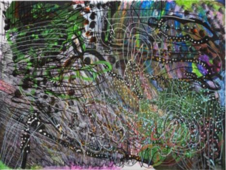 Maureen Clay paints with thick impasto, layering her colors and covering the composition several times. Her intricate sense of color and design creates images that appear abstract and described as “distorted versions of fish, birds, and food.” Her work encourages many viewers to look closely at each image, whether interpreted as a deep seascape or a view through a microscope.