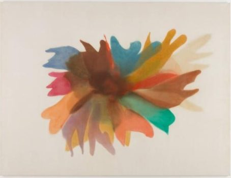 Morris Louis was a pioneer of color field painting—a movement that succeeded abstract expressionism in the 1950s. Floral exemplifies his command of stain-painting techniques, in which he poured thinned acrylic across the canvas so that medium and support became one, working outward from the center as though the paint were literally “flowering” from the core of the piece. It is one of twelve paintings in the Floral series, all of which are unique for their condensed centrality and their allusion to floral imagery.
