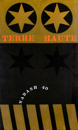 Widely popular for his sculpture, abstract painting, and pop art, Robert Indiana was a “self-proclaimed American painter of signs” whose work examines American identity, personal history, and the power of abstraction. While living and operating his studio in the Manhattan neighborhood of Coenties Slip, he scavenged for discarded materials in abandoned warehouses to create his assemblages. His discovery of nineteenth-century brass stencils led to the “incorporation of brightly colored numbers and short emotionally charged words into [his work] and became the basis of his new painterly vocabulary.”