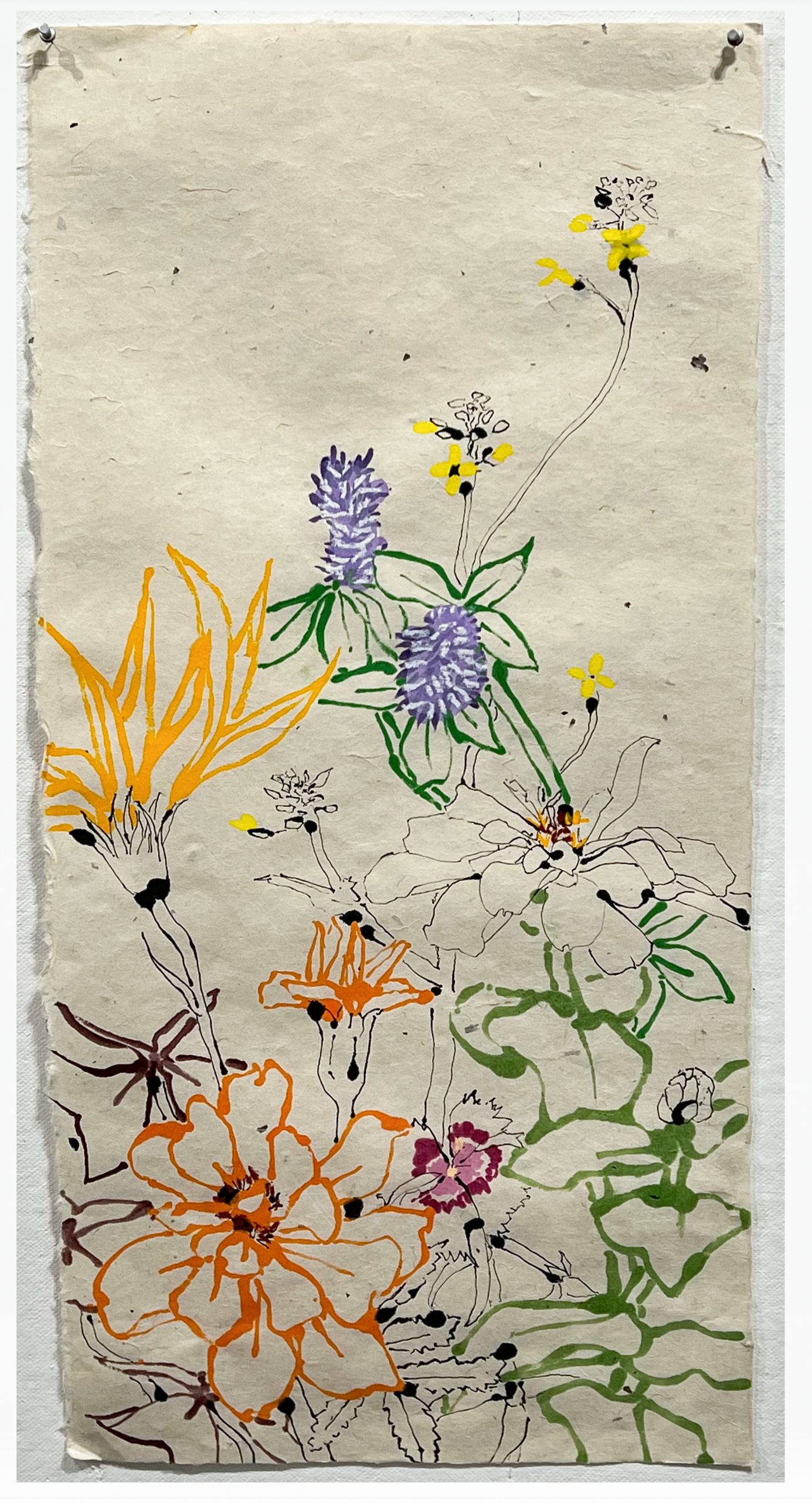 Robert Kushner’s artwork centers around ornamentation and decoration. His paintings of organic material abstracted and graphically depicted are influenced by European textiles and global artists. “I never get tired of pursuing new ideas in the realm of ornamentation. Decoration, an abjectly pejorative dismissal for many, is a very big, somewhat defiant declaration for me…The eye can wander, the mind think unencumbered through visual realms that are expansively and emotionally rich. Decoration has always had its own agenda, the sincere and unabashed offering of pleasure and solace,” he said.