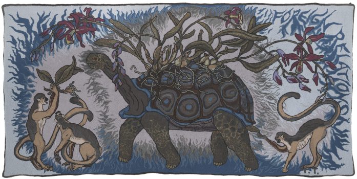 Tara Tucker’s meticulously rendered drawings portray bizarre yet realistic hybrid creatures from a future animal kingdom, free from the fetters of human intervention. Imagining the evolution of various species to survive climactic and environmental changes, Tucker documents the survival of the fittest through cross-species breeding and even imaginative flora-fauna mergers. Often displaying convincingly anthropomorphic emotions, such as anger or fear, the creatures’ zoological accuracy is due to Tucker’s familiarity with animal skeletons acquired in her youth by assisting her mother, a taxidermist at the local Natural History Museum.
