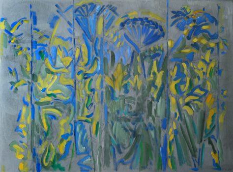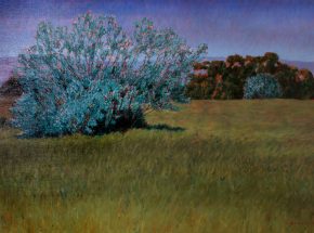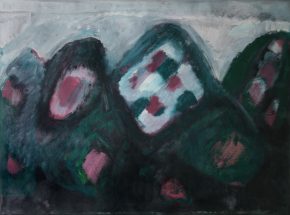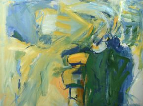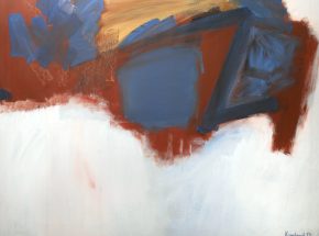 Best known for his semi-abstract landscapes, William A. Kienbusch was deeply influenced by the coastal terrain and colors of Stonington, Maine, that captured the “inner reality of the world of nature.” After photographing and sketching the pine trees, buoys, and shacks of Maine’s summer shoreline, Kienbusch would spend time during the winter painting his geometrically formulated landscapes on canvas, using his sketches and photographs as reference. In the 1960s, he implemented looser brushwork to portray the dynamic movement and rhythms of natural forces in his compositions.